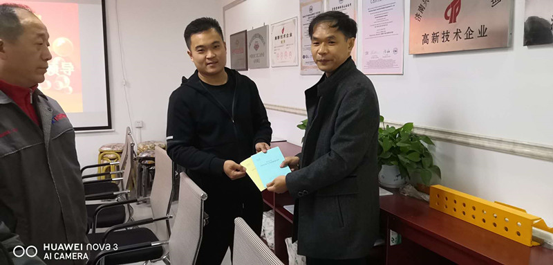 工作组一行还宣讲了疫情防控和复工复产方面的各类政策和工商联帮扶企业的各类政策举措,向公司赠送了《山东省支持企业人才发展政策清单》和《山东省支持青年人才发展政策清单》等内部资料。