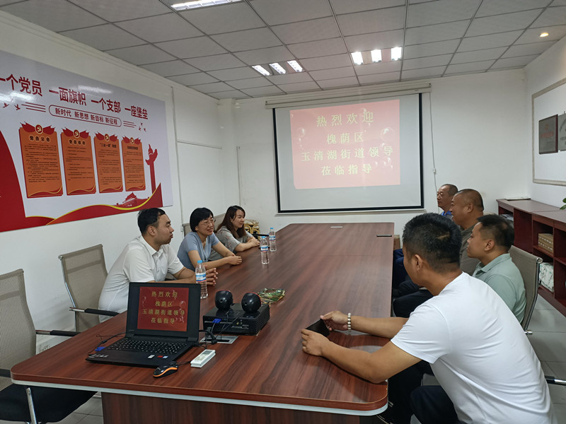 9月3日上午,槐荫区玉清湖街道党建工作办公室副主任李伟伟莅临公司调研指导,玉清湖街道办事处经济发展服务中心王鲲、潘辉陪同。公司董事长徐福厚、总经理徐鹏、党支部书记孔祥健等公司领导热情接待了李伟伟副主任一行。