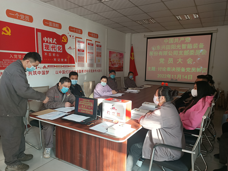1114午,公司党支部在党员活动室召开党员大会,讨论表决预备党员转正事宜并开展专题学习活动,支部全体党员参加会议,公司总经理徐鹏同志、入党积极分子和入党申请人列席会议,玉清湖街道党政办公室潘艳敏同志到会指导。支部书记孔祥健同志主持大会。