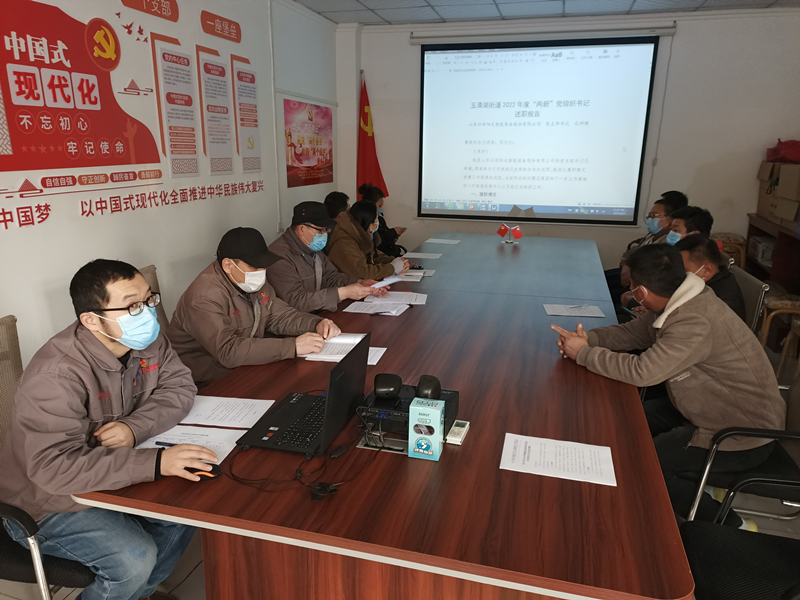 27日下午,公司党支部在党员活动室召党员大会开展2022年度组织生活会和民主评议党员活动,支部书记孔祥健主持大会,支部全体党员参加大会,公司总经理魏斌、部分入党积极分子和入党申请人列席大会,槐荫区玉清湖街道党政办公室对大会的召开进行了指导。