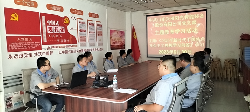 重温入党誓词活动结束后,与会人员回到党员活动室,王德华同志领学主题教育学习资料《习近平新时代中国特色社会主义思想学习问答》,通过电子有声书的学习,教育引导大家坚定不移听党话、跟党走。