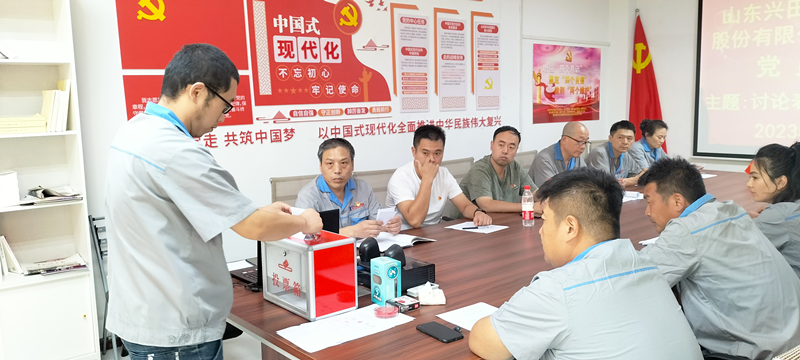9月14日下午,公司党支部在党员活动室召开党员大会,讨论表决预备党员转正事宜并开展习近平新时代中国特色社会主义思想主题教育学习活动,支部全体党员参加会议,公司总经理徐鹏同志、发展对象、入党积极分子和入党申请人列席会议,玉清湖街道党经济发展服务中心潘辉同志到会指导。支部书记孔祥健同志主持大会。
