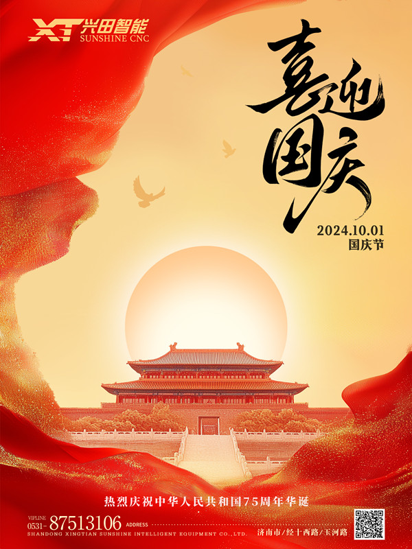 在这举国同庆、共享团圆的日子, 山东兴田阳光智能装备董事长徐福厚、总经理徐鹏向广大合作伙伴、公司全体员工及家人致以节日的问候,衷心祝愿我们伟大的祖国更加繁荣昌盛,祈愿大家幸福安康!让我们携手同庆这举国欢腾的国庆佳节,共同分享盛世中华带来的无尽荣光与喜悦!